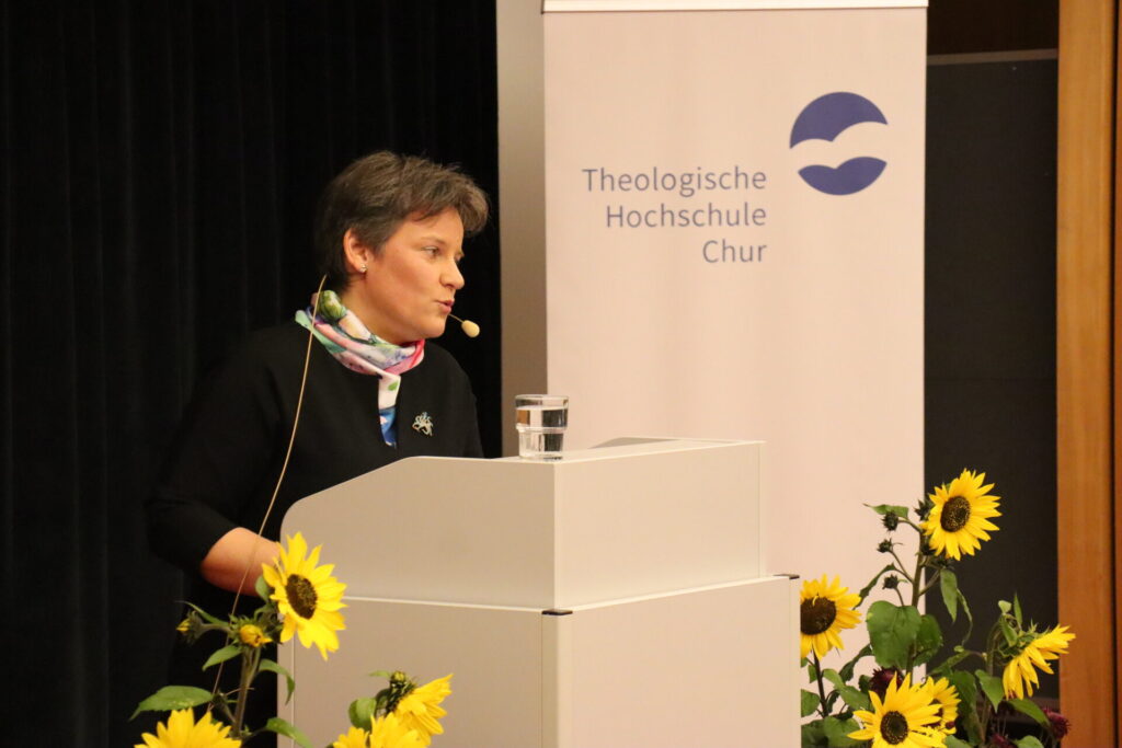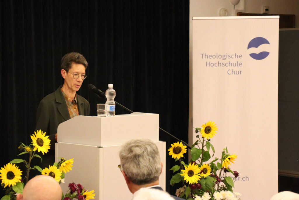 Zahlreiche Gäste aus Kirche, Gesellschaft und Politik kamen am Montag, den 20.10.2025 in der Aula der Theologischen Hochschule Chur zum Dies academicus 2025 der Theologischen Hochschule Chur. Zu Beginn begrüsste Rektorin Prof. Dr. Eva-Maria Faber die Anwesenden, besonders Bischof Dr. Joseph Maria Bonnemain und die Vertreter der Bistumsleitung. Aus der Politik nahm Regierungspräsident Dr. Jon Domenic Parolini und Dr. Gion Lechmann, Vorsteher des Amts für Höhere Bildung im Kantons Graubünden, an der akademischen Feier teil. Erfreulicherweise waren mehrere Vertretungen der staatskirchenrechtlichen Körperschaften, u.a. Mitglieder des Synodalrats und der Synode der Katholischen Kirche im Kanton Zürich bei der Feier vertreten.