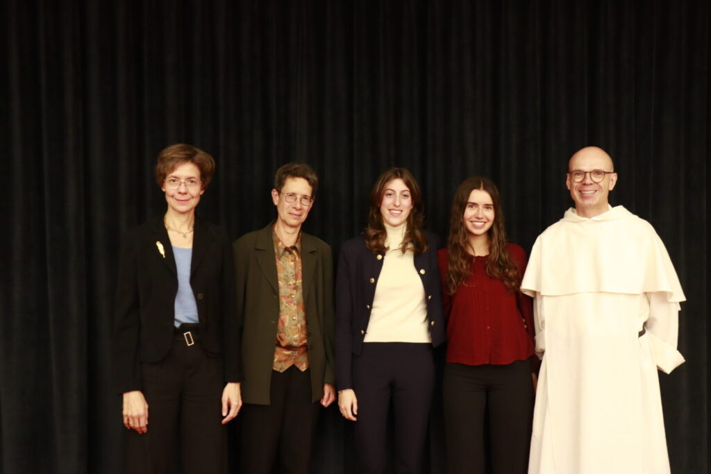 Im Anschluss an die Festrede nahm Prof. Dr. Franziskus Knoll in Vertretung des erkrankten Kollegen Prof. Dr. Christian Cebulj die Preisverleihung des Churer Maturapreises für Religion 2025 vor. Anastasia Sala, frühere Schülerin des Lyceum Alpinum in Zuoz, erhielt den ersten Preis für ihre Maturaarbeit zum Thema «Ewiges Schweigen(?) Der Wandel des Vatikans im Umgang mit Missbrauchsfällen». Darin beschäftigt sie sich mit der Frage, wie sich der Umgang des Vatikans mit sexuellen Missbrauchsfällen von der Mitte des 20. Jahrhunderts bis zum frühen 21. Jahrhundert entwickelt hat, insbesondere in Bezug auf die interne und öffentliche Darstellung. Der zweite Preis ging an Lorena Torres von Tübach SG, die an der Kantonsschule Am Burggraben St. Gallen eine Arbeit in englischer Sprache zum Thema «Theology and Psychology – How Can Faith Be Supportive in Therapy?» eingereicht hatte. Darin untersucht sie die interessante Frage, inwiefern religiöser Glaube im Rahmen psychotherapeutischer Prozesse unterstützend wirken kann. Mit dem dritten Preis wurde Anaïs Lynn Barghorn von Meilen ausgezeichnet, die ihre Maturaarbeit an der Kantonsschule Uetikon am See eingereicht hatte. Die Arbeit trug den Titel «Schenken einmal anders: Die Lebendnierenspende» und stellte eine doppelte Transplantationsgeschichte von Seiten der Empfänger:in und der Spender:in dar, die gleichzeitig in einem spannenden Podcast präsentiert wurde. Die Maturapreise waren mit 500 Fr., 300 Fr. und 200 Fr. dotiert, Sponsorin war in diesem Jahr die Kirchgemeinde Zürich Guthirt, deren Pfarrer Marcel von Holzen erfreulicherweise auch beim Dies Academicus anwesend war.